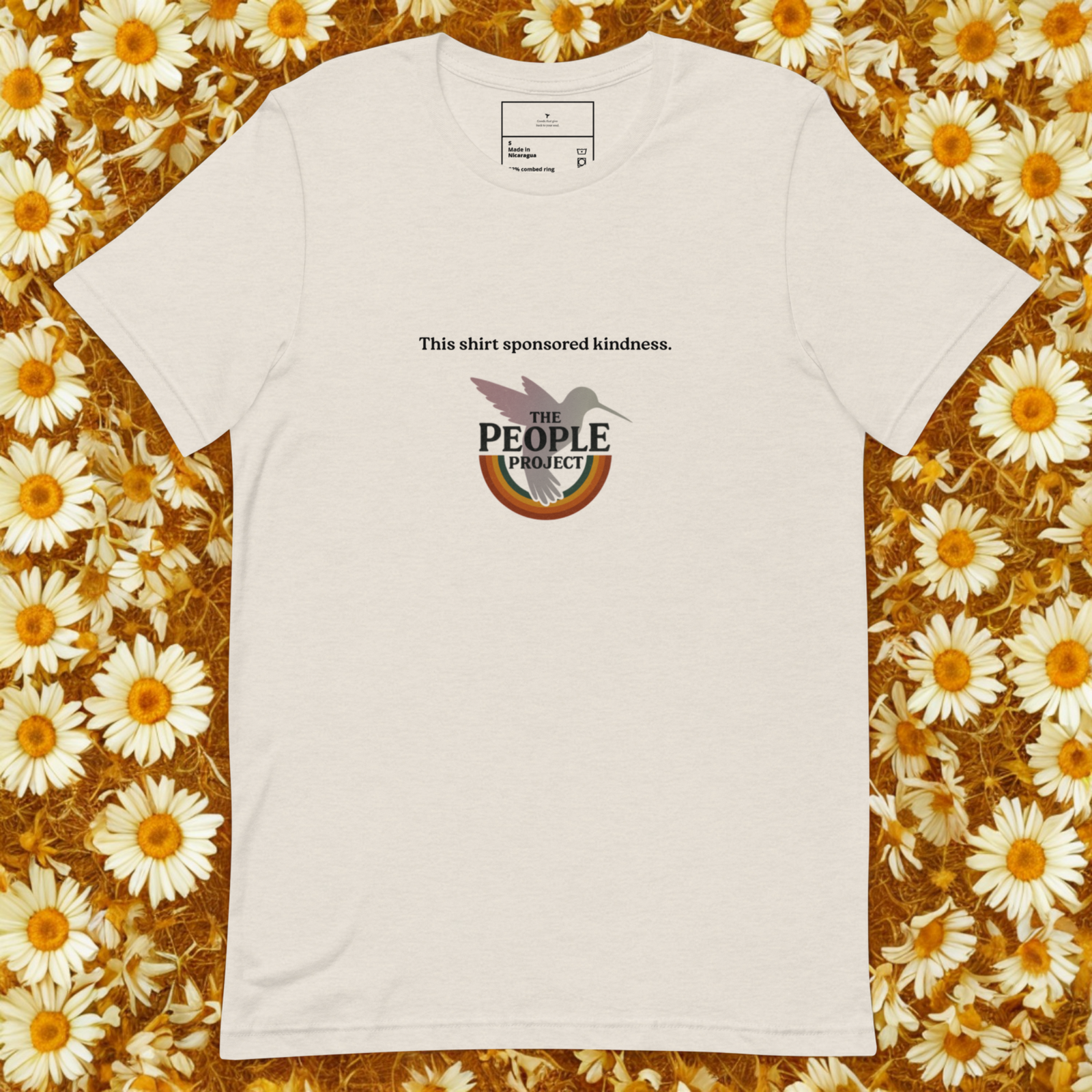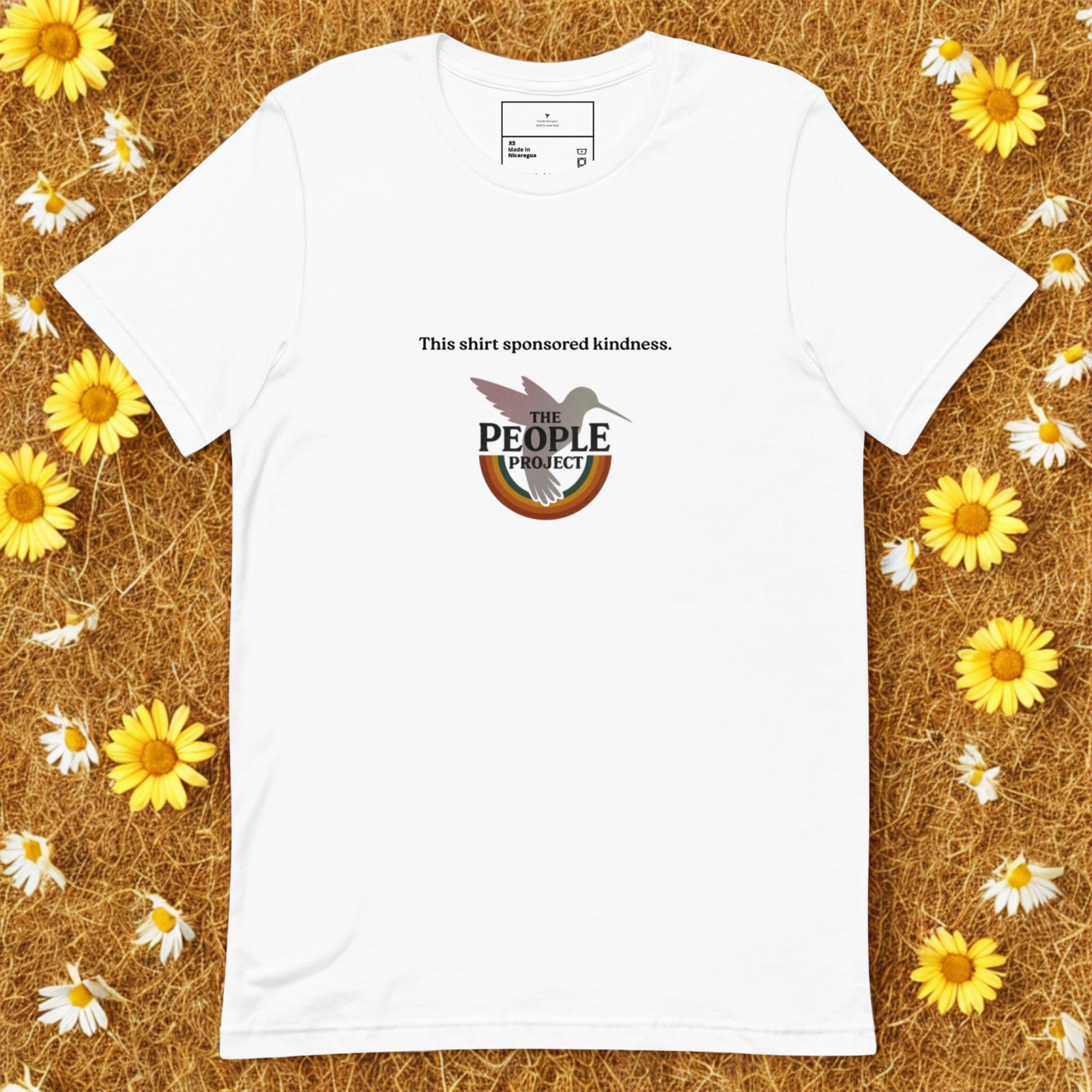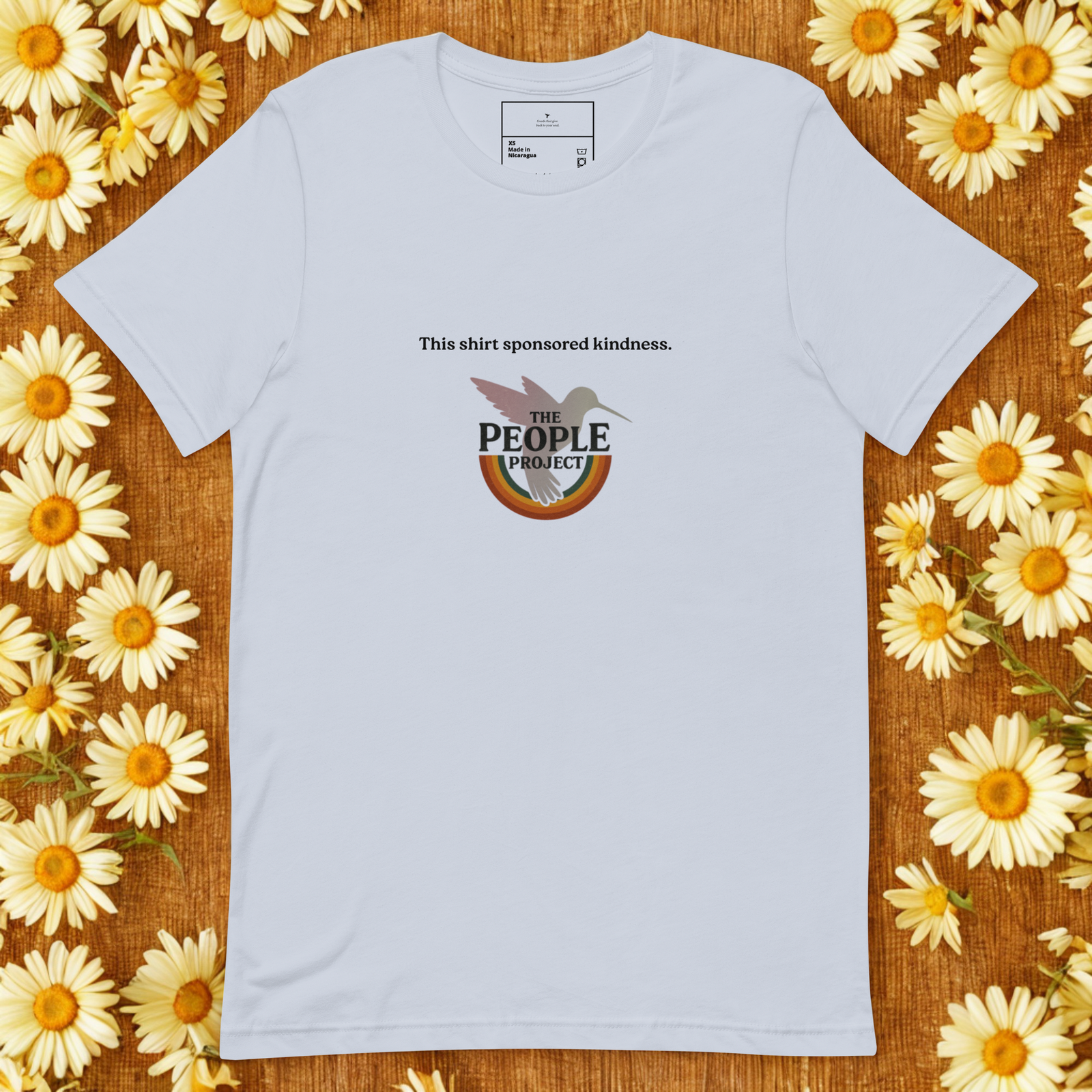 Featuring the signature The People Project hummingbird and rainbow emblem, along with the simple yet powerful message—“This shirt sponsored kindness.”—this shirt lets you wear your heart on your sleeve (literally).