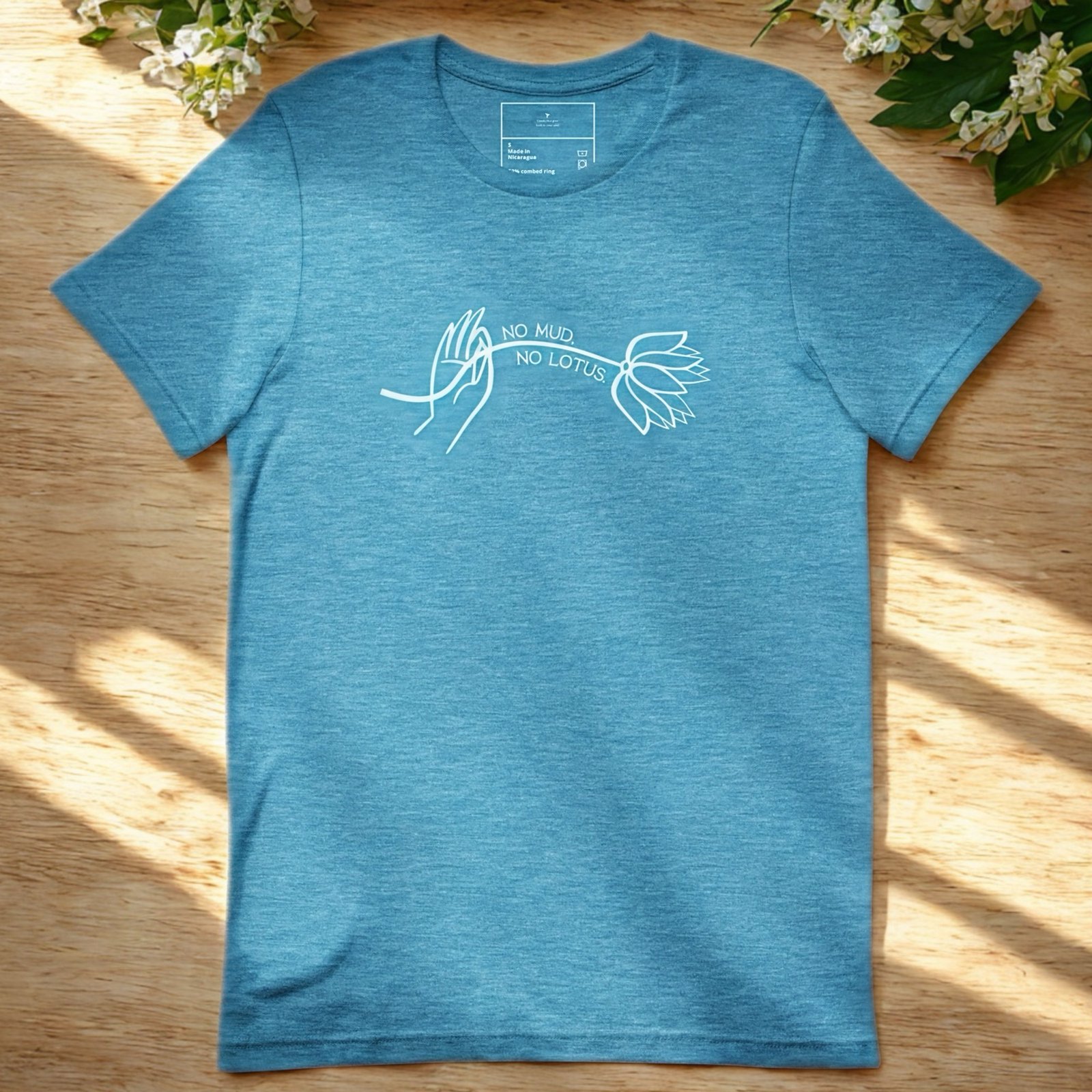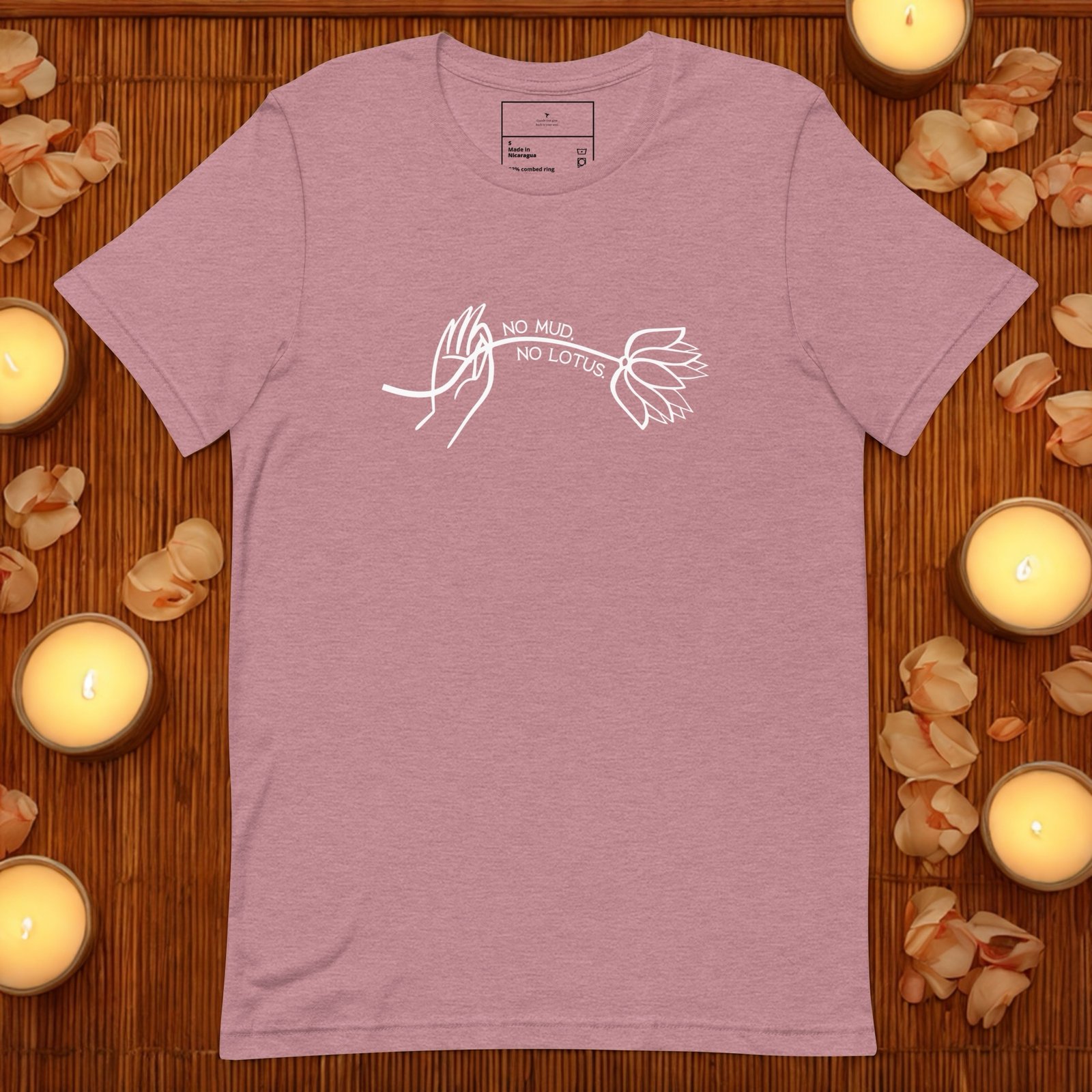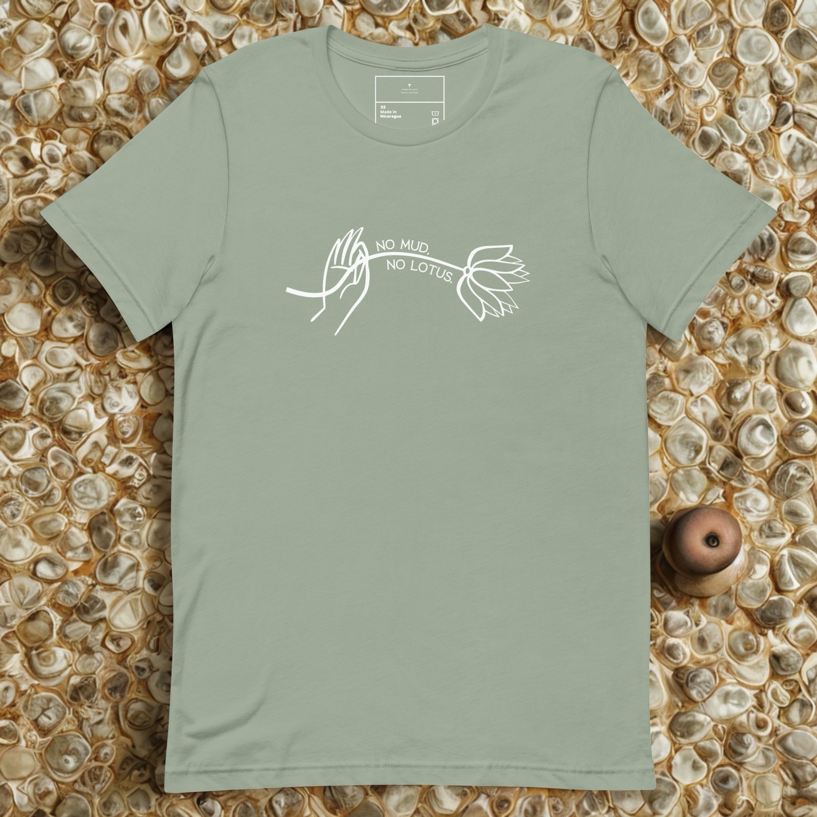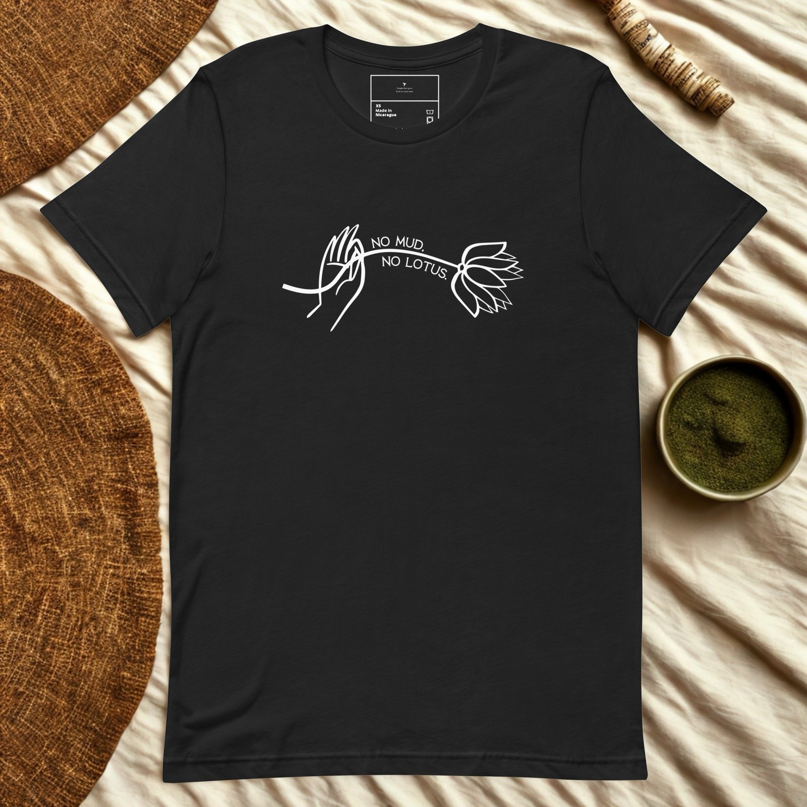 The No Mud. No Lotus. Tee is a wearable reminder that beauty often blooms from the hardest places. Featuring a minimal line art design of hands offering a lotus, this tee honors the messy, transformative process of becoming. It’s for anyone who knows that without the mud, there’s no lotus—and without the struggle, there’s no growth.