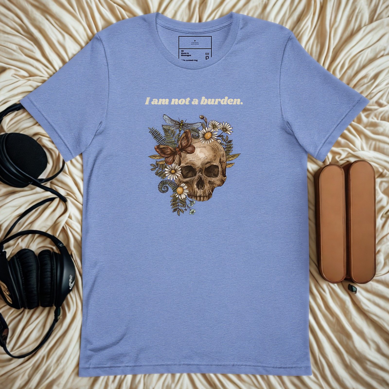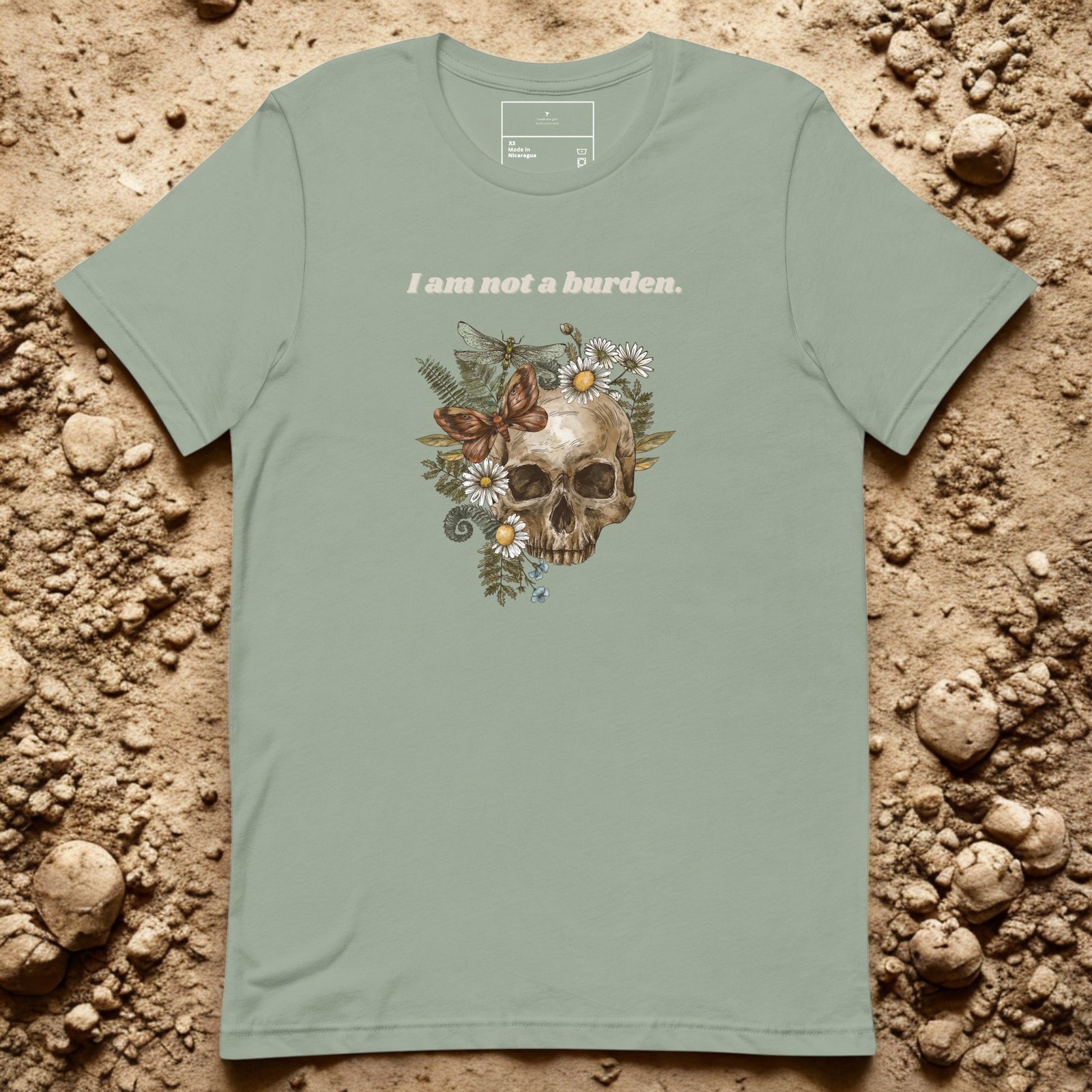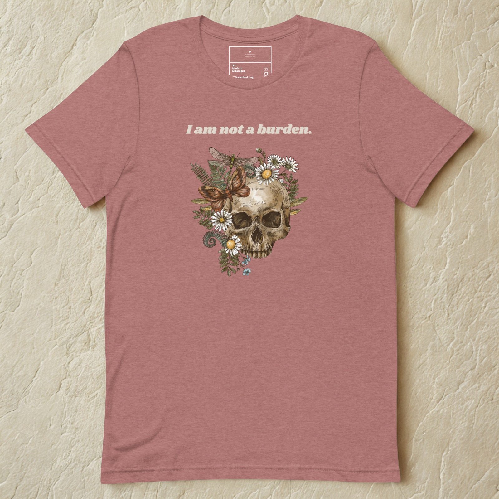 Mental health struggles don’t make you a burden—and this tee makes that truth visible. The Not A Burden Tee features a striking skull-and-floral illustration paired with bold, affirming text to challenge stigma and spark meaningful conversations.
